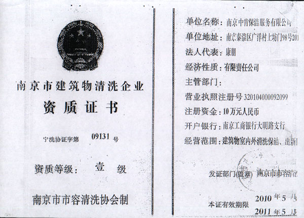 南京保潔公司注冊(cè)資金10萬元,是江蘇省家庭服務(wù)協(xié)會(huì)會(huì)員單位,江蘇省家政服務(wù)業(yè)分類執(zhí)行標(biāo)準(zhǔn)起草制定單位,先后被評(píng)為江蘇誠信服務(wù)先進(jìn)單位、南京是家政服務(wù)定點(diǎn)培訓(xùn)單位、南京市十佳建筑物清洗企業(yè)、南京市誠信示范單位、南京市鼓樓區(qū)三信三優(yōu)單位。董事長康朋是江蘇省家庭服務(wù)業(yè)協(xié)會(huì)副會(huì)長、江蘇省家政服務(wù)分類執(zhí)行標(biāo)準(zhǔn)主要起草人。